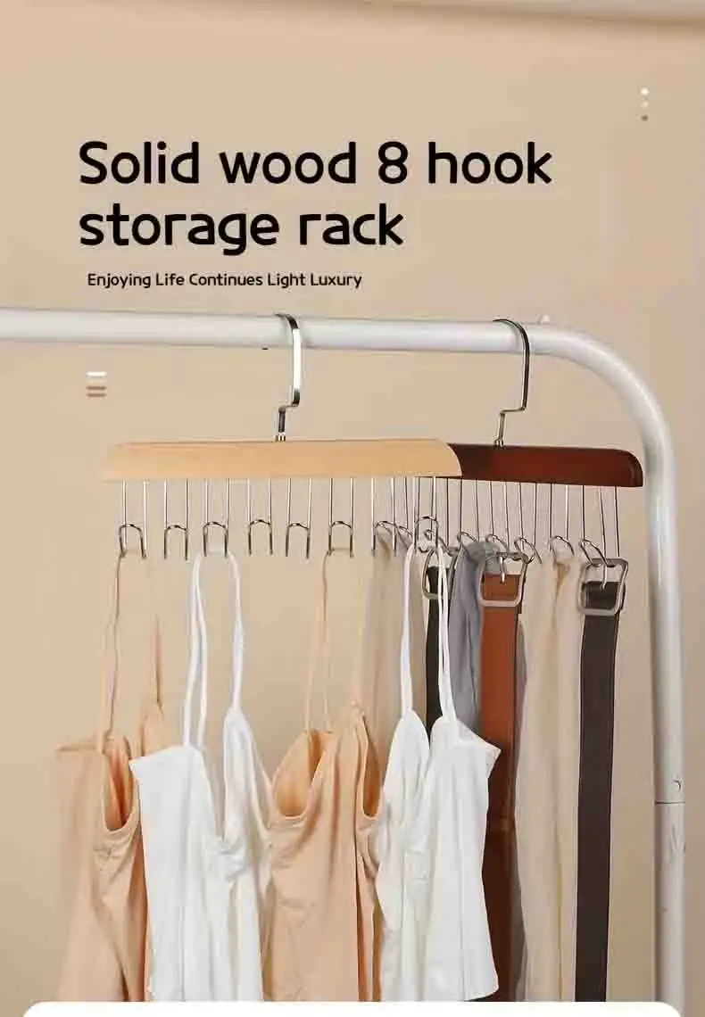 Cabide de Madeira Maciça com 8 Ganchos – Organização e Elegância para Seu Espaço