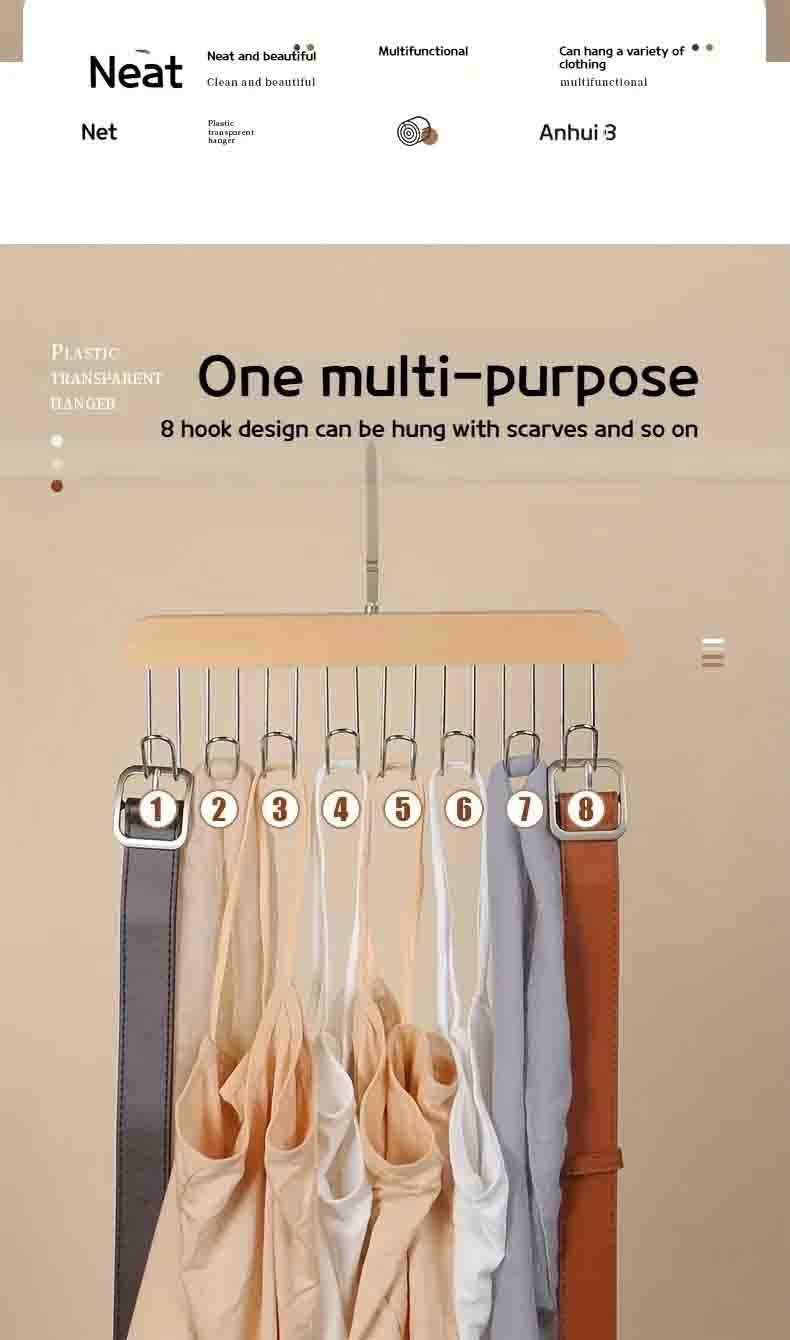 8 ganchos multiuso – ideal para roupas íntimas, coletes, gravatas, lenços e acessórios, mantendo tudo sempre à mão.
